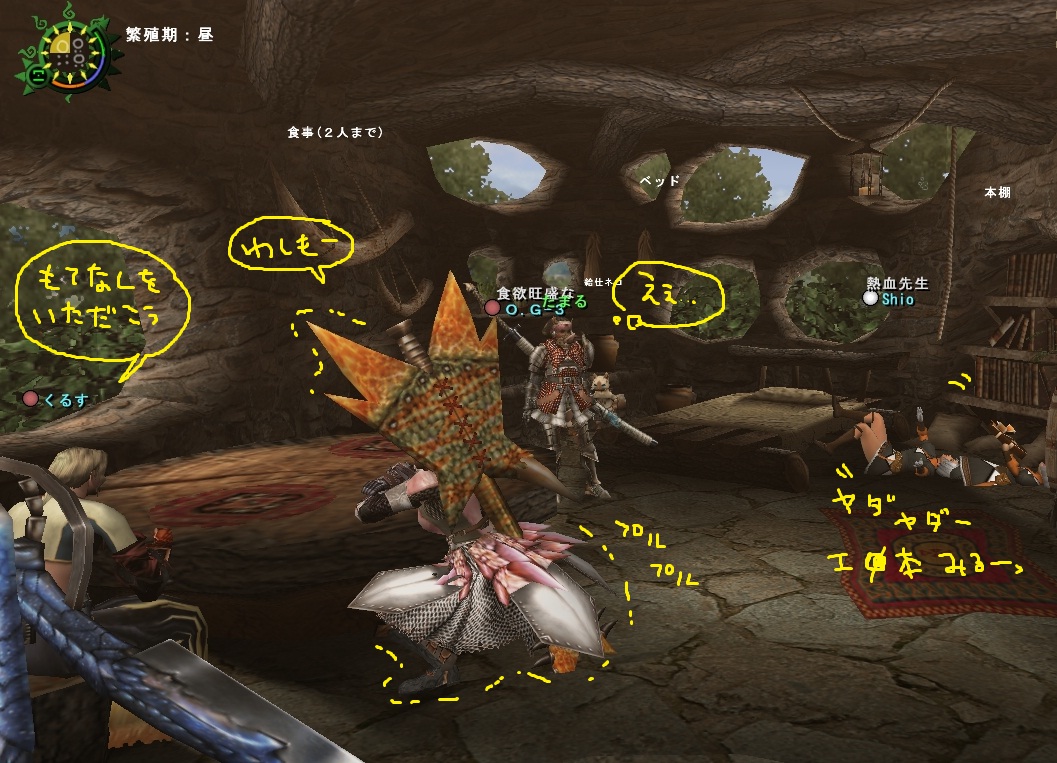 今日はくるす君・タマルーさん・お塩さんの4人で狩りカリ。